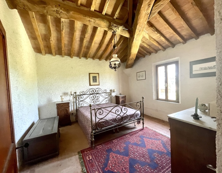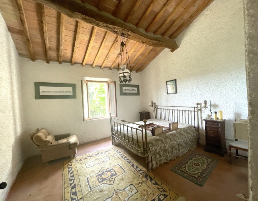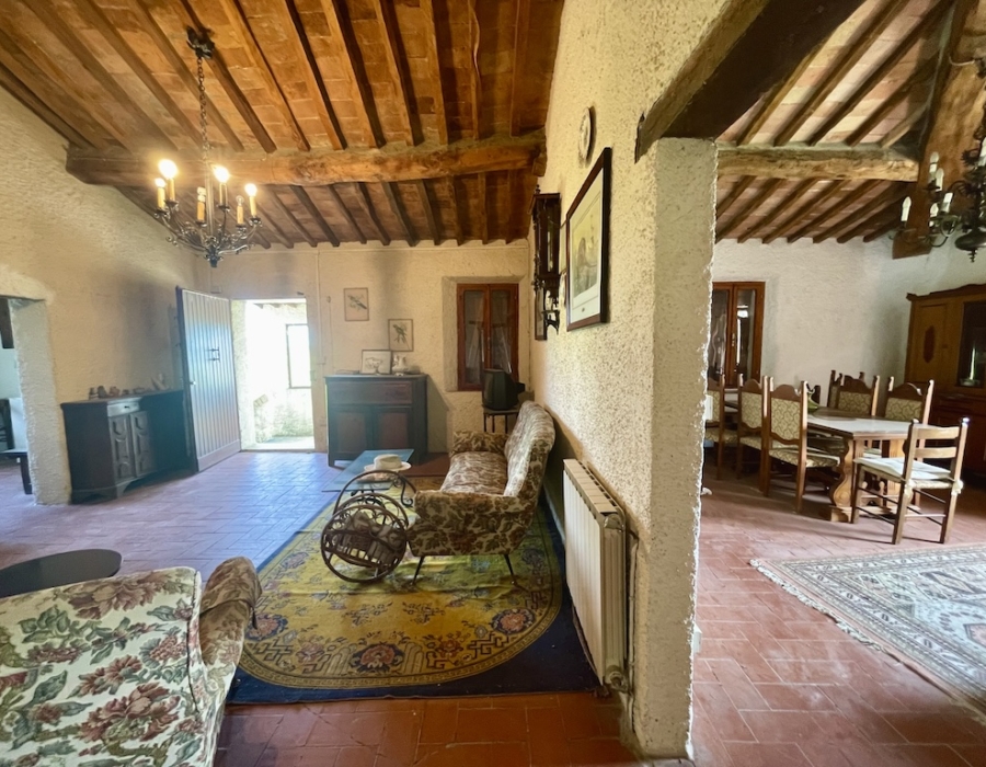 Di classica struttura senese, il primo piano è abitabile, con riscaldamento indipendente, e ospita un’accogliente zona giorno con un antico camino tradizionale toscano, cucina, ampio studio con due finestre, tre camere matrimoniali e due bagni.