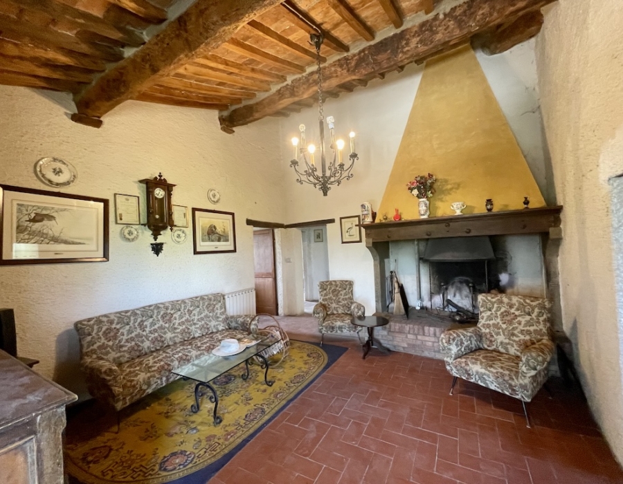 SALOTTO CON GRANDE CAMINO TOSCANO + CUCINA