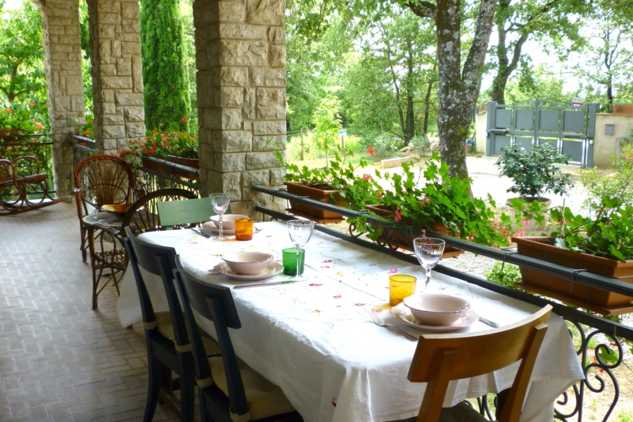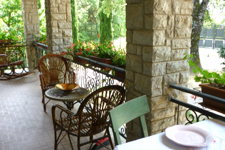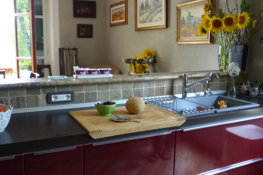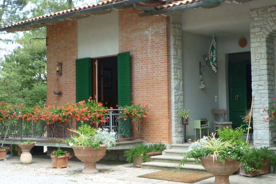 Le Noci è una Villa di campagna contemporanea, ampia e ariosa, con begli spazi interni, grandi porte-finestre sul loggiato e sul giardino, offrendo un’atmosfera di comfort e pace.